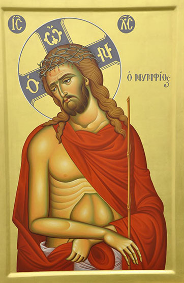 Latīņu ikonogrāfiskā tradīcijā pastāv Jēzus Ecce Homo (“lūk, cilvēks!”) attēlojums. Tajā Jēzu parāda Pilāta pretorijā kā lasām Jņ 19,5 “Jēzus iznāca ārā ar ērkšķu vainagu galvā un purpura apmetnī. Pilāts tiem sacīja: “Redzi, cilvēks!” Savukārt, bizantiešu ikonogrāfijā šīs pats ikonu tēls tiek saukt par “Baznīcas Līgavaini” vai vienkārt par “Līgavaini”. Līgavainis-Kristus ir grezni rotāts ar ērkšķiem, niedri un purpura apmetni.